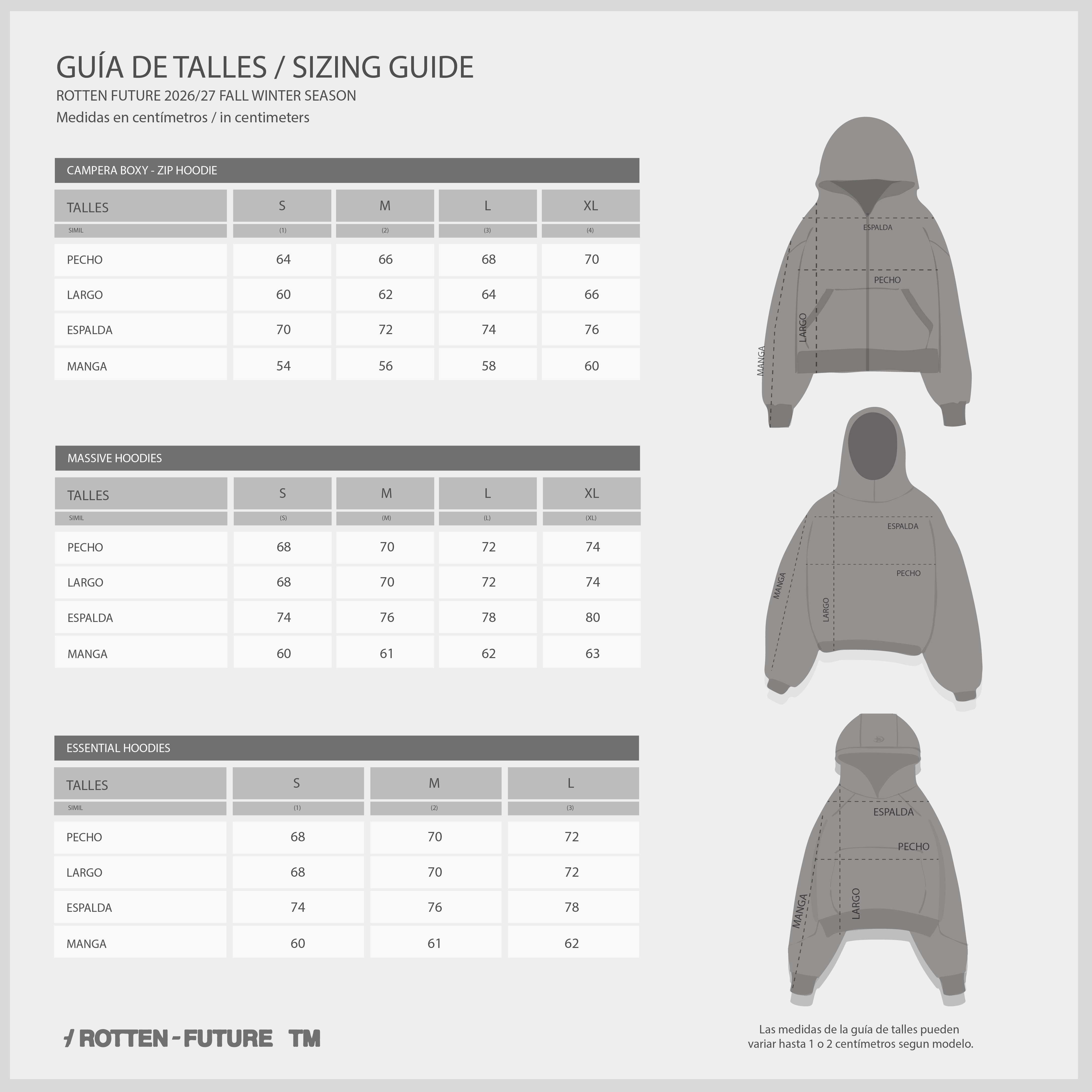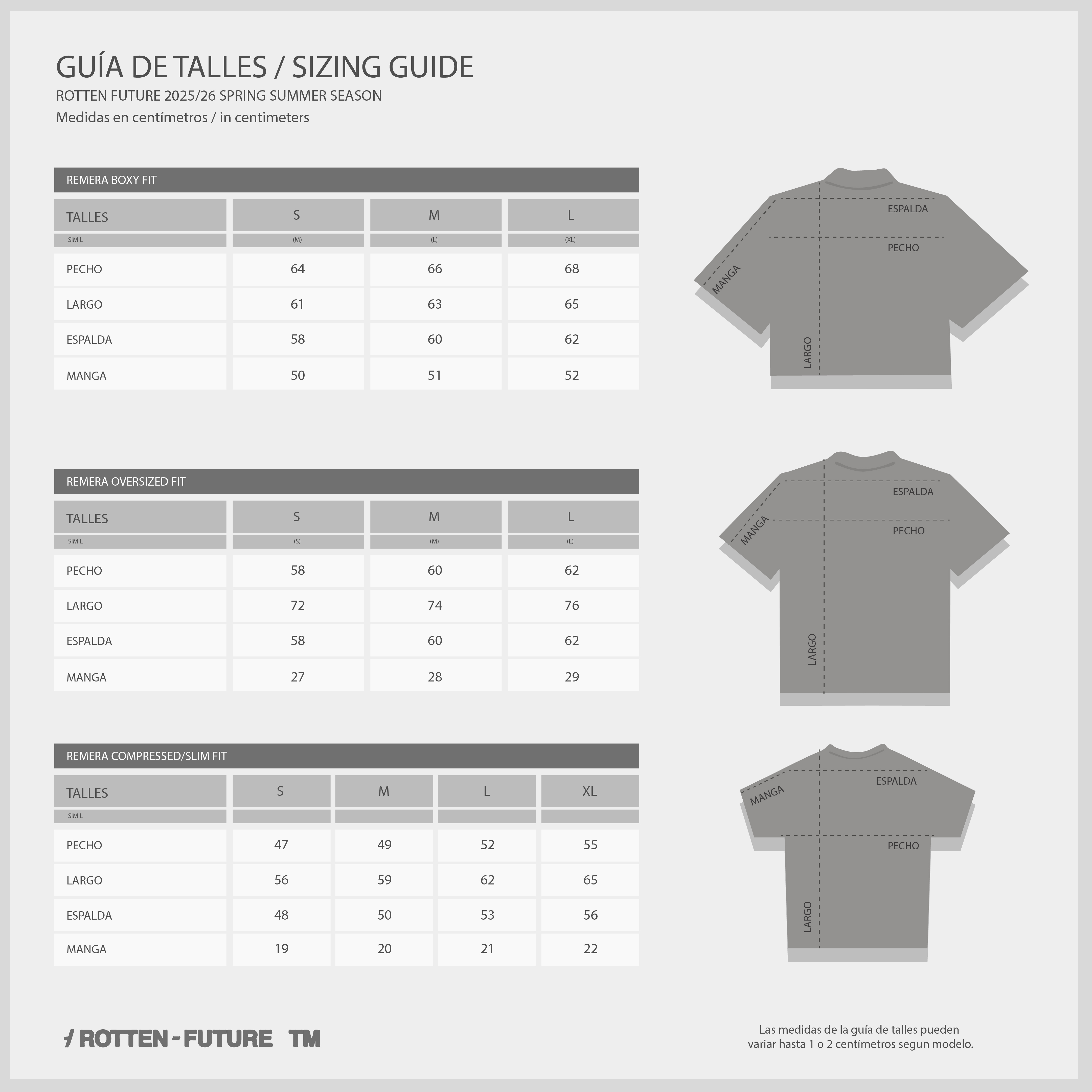 Las medidas de guía de talles pueden variar hasta levemente según modelo.